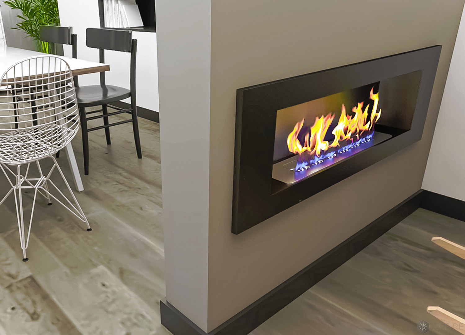 Встраиваемые варианты разделяются на такие как классические, устанавливаемые в подготовленное отверстие в стене или нише. Угловые, которые монтируются в угловую часть стены. Торцевые – открытые с трёх сторон. И сквозные, вид живого огня которых доступен в разных комнатах.