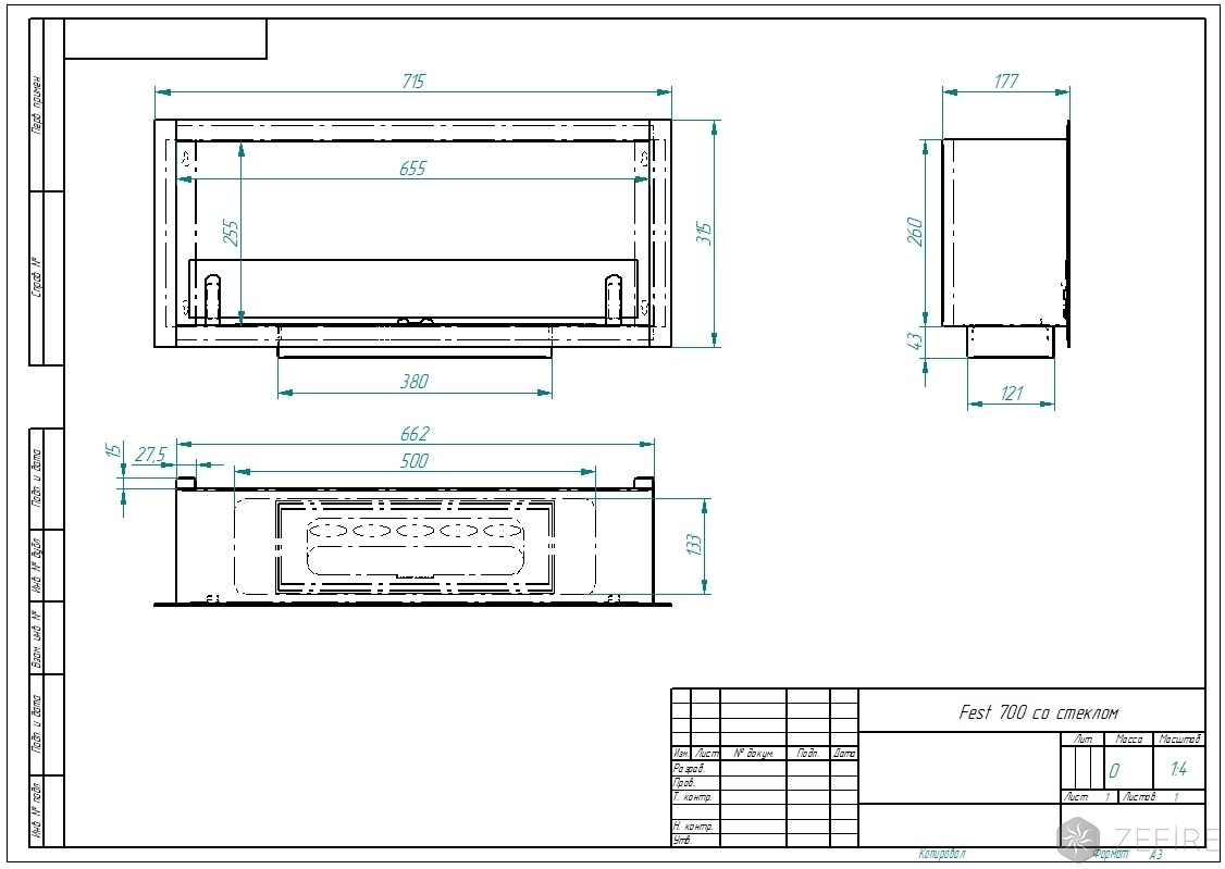 Биокамин Fest 700 со стеклом(Estetic Flame)